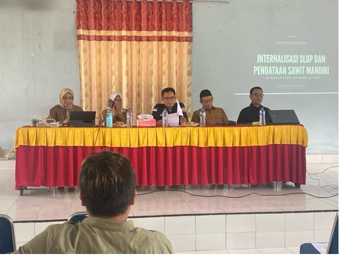 Acara dibuka oleh Direktur Komunitas Teras, yang menekankan pentingnya menjaga sumber daya alam melalui intervensi kecil yang berdampak besar. Kepala DPMD Konawe Utara, Bapak Ir. Dedeng, secara resmi membuka acara dan menyoroti pentingnya tata kelola lahan yang optimal di Konawe Utara. Beliau mengapresiasi Komunitas Teras yang telah mengidentifikasi batas-batas daerah kelola, sehingga potensi sumber daya alam dapat dipahami dengan baik. Partisipasi aktif dari pemerintah, masyarakat, dan pihak terkait sangat dibutuhkan untuk internalisasi SLUP dan database sawit.